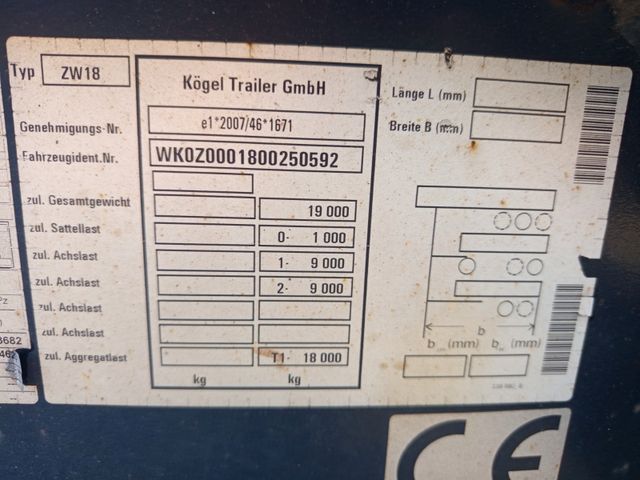 Kögel ZW 18 *TANDEM *BDF *SAF *Luft *Disc Brakes